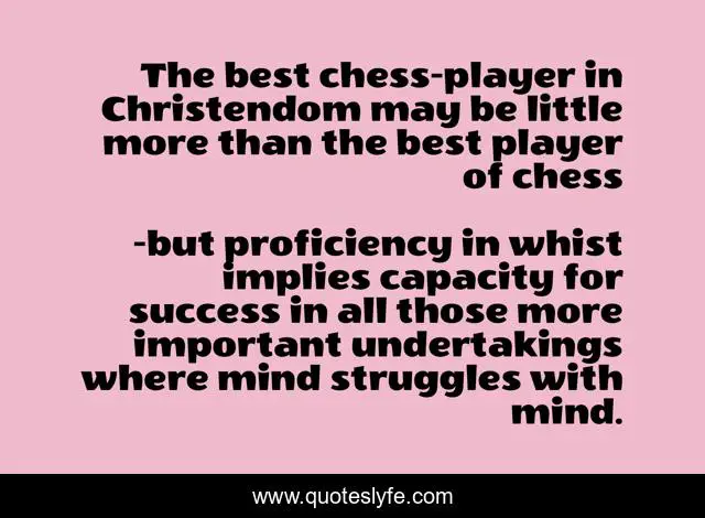 "but proficiency in whist implies capacity for success in all those more important undertakings where mind struggles with mind. Quotes." Quoteslyfe.com, 2025. Sat. 06 Dec. 2025. <https://www.quoteslyfe.com/quote/The-best-chess-player-in-Christendom-may-155931>.