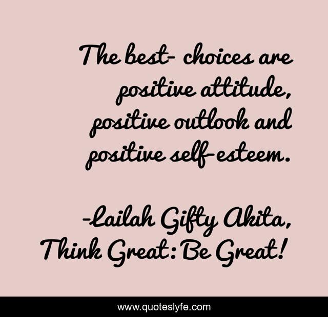 "Lailah Gifty Akita, Think Great: Be Great! Quotes." Quoteslyfe.com, 2025. Fri. 05 Dec. 2025. <https://www.quoteslyfe.com/quote/The-best-choices-are-positive-attitude-positive-94982>.