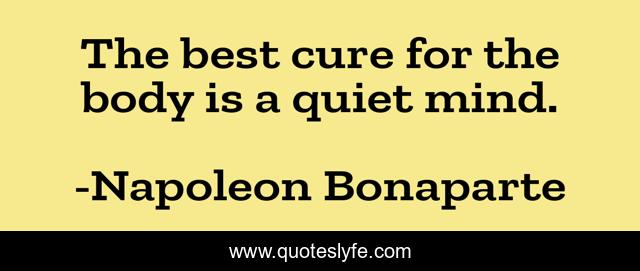 This page presents the quote "The best cure for the body is a quiet mind.". Author of this quote is Napoleon Bonaparte. This quote is about body, mind, quiet,.