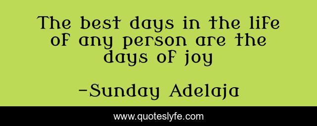 This page presents the quote "The best days in the life of any person are the days of joy". Author of this quote is Sunday Adelaja. This quote is about joy, life, days, happiness,.