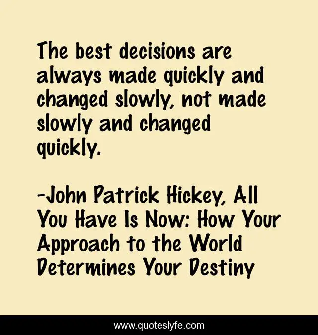 "John Patrick Hickey, All You Have Is Now: How Your Approach to the World Determines Your Destiny Quotes." Quoteslyfe.com, 2025. Sat. 06 Dec. 2025. <https://www.quoteslyfe.com/quote/The-best-decisions-are-always-made-quickly-140758>.