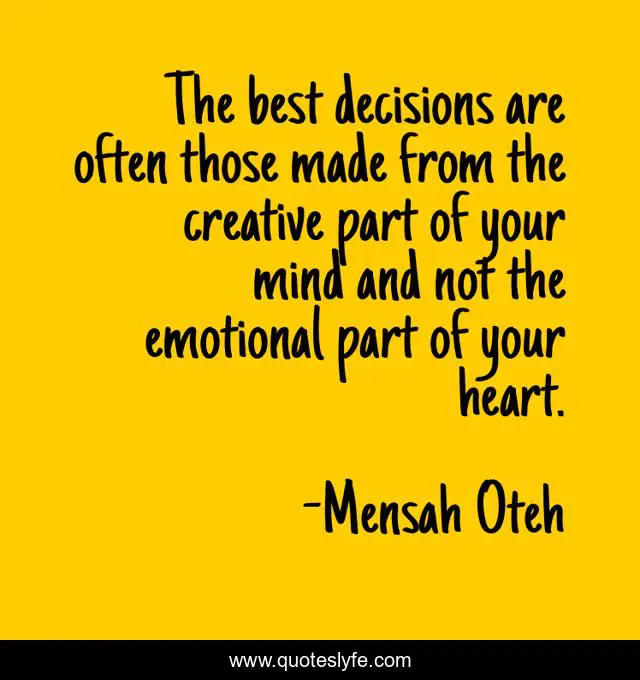 "Mensah Oteh Quotes." Quoteslyfe.com, 2025. Sat. 06 Dec. 2025. <https://www.quoteslyfe.com/quote/The-best-decisions-are-often-those-made-48995>.