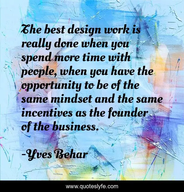 This page presents the quote "The best design work is really done when you spend more time with people, when you have the opportunity to be of the same mindset and the same incentives as the founder of the business.". Author of this quote is Yves Behar. This quote is about work, business, time,.