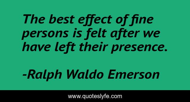 This page presents the quote "The best effect of fine persons is felt after we have left their presence.". Author of this quote is Ralph Waldo Emerson. .