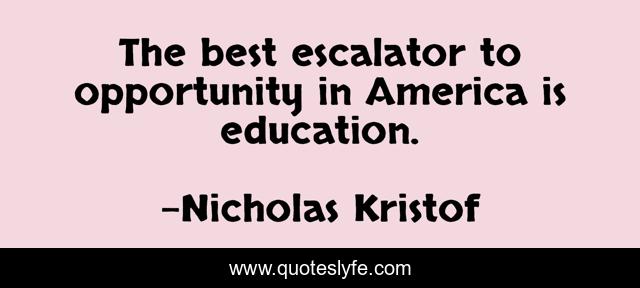 This page presents the quote "The best escalator to opportunity in America is education.". Author of this quote is Nicholas Kristof. This quote is about america, opportunity, best,.