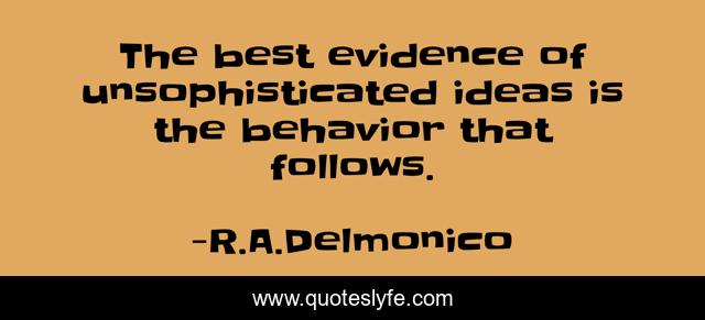 This page presents the quote "The best evidence of unsophisticated ideas is the behavior that follows.". Author of this quote is R.A.Delmonico. This quote is about ideas, behavior,.