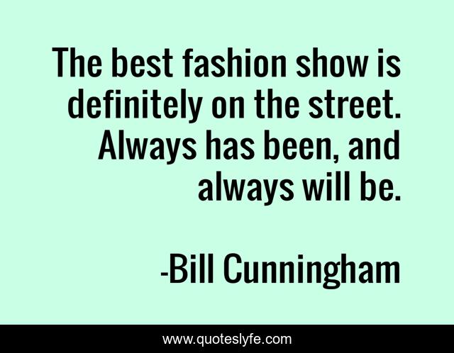 "Bill Cunningham Quotes." Quoteslyfe.com, 2025. Sat. 06 Dec. 2025. <https://www.quoteslyfe.com/quote/The-best-fashion-show-is-definitely-on-302852>.