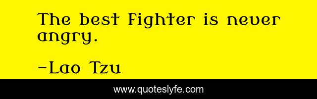 This page presents the quote "The best fighter is never angry.". Author of this quote is Lao Tzu. This quote is about warriorship, ataraxy, anger-management, bushido, warrior-ethos, serenity, self-control, anger, martial-arts,.
