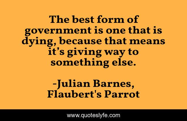 This page presents the quote "The best form of government is one that is dying, because that means it’s giving way to something else.". Author of this quote is Julian Barnes, Flaubert's Parrot. This quote is about politics, government,.