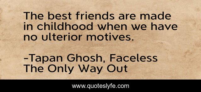 This page presents the quote "The best friends are made in childhood when we have no ulterior motives.". Author of this quote is Tapan Ghosh, Faceless The Only Way Out. This quote is about friendship, best-friends,.
