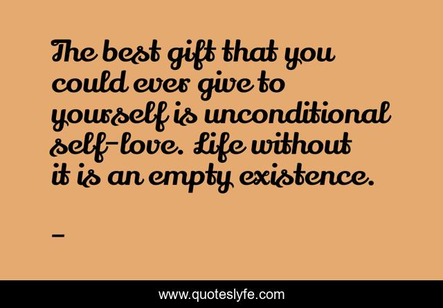 This page presents the quote "The best gift that you could ever give to yourself is unconditional self-love. Life without it is an empty existence.". Author of this quote is . This quote is about edmond-mbiaka, loving-yourself-unconditionally, an-empty-existence, an-empty-life,.