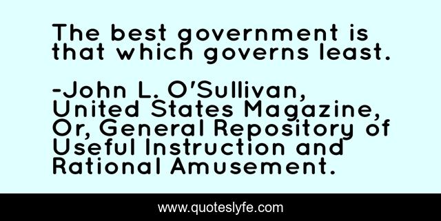 This page presents the quote "The best government is that which governs least.". Author of this quote is John L. O'Sullivan, United States Magazine, Or, General Repository of Useful Instruction and Rational Amusement.. .