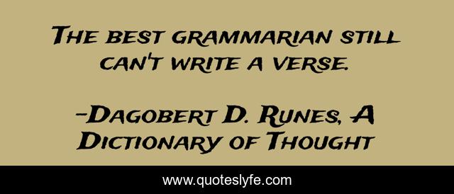 This page presents the quote "The best grammarian still can't write a verse.". Author of this quote is Dagobert D. Runes, A Dictionary of Thought. This quote is about grammar, poetry, language,.