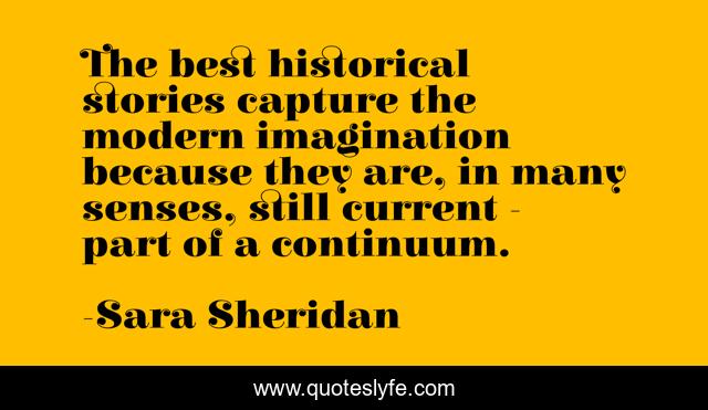 This page presents the quote "The best historical stories capture the modern imagination because they are, in many senses, still current - part of a continuum.". Author of this quote is Sara Sheridan. This quote is about continuum, sara-sheridan, fiction, imagination, stories, historical,.