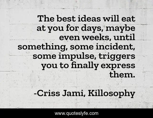 "Criss Jami, Killosophy Quotes." Quoteslyfe.com, 2025. Mon. 08 Dec. 2025. <https://www.quoteslyfe.com/quote/The-best-ideas-will-eat-at-you-8263>.