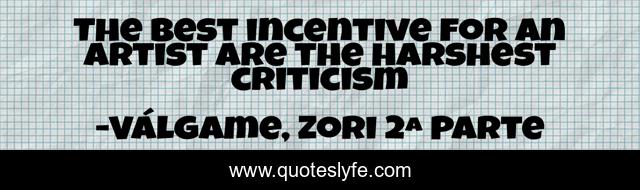 This page presents the quote "The best incentive for an artist are the harshest criticism". Author of this quote is Válgame, Zori 2ª Parte. This quote is about critic, work, artist,.