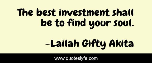 This page presents the quote "The best investment shall be to find your soul.". Author of this quote is Lailah Gifty Akita. This quote is about inspiring, seeking, wise-words, soul, self-realization, investment,.