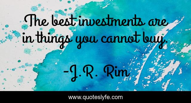 This page presents the quote "The best investments are in things you cannot buy.". Author of this quote is J.R. Rim. This quote is about purchase, life, buy, wealth, material, experience, investment, best,.