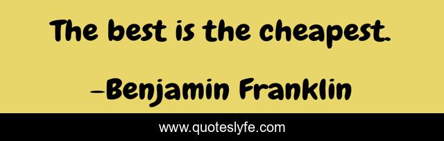 This page presents the quote "The best is the cheapest.". Author of this quote is Benjamin Franklin. .