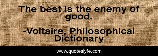 This page presents the quote "The best is the enemy of good.". Author of this quote is Voltaire, Philosophical Dictionary. This quote is about good, desires, insatiability, best, ambition, greed,.
