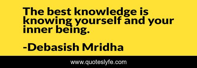 This page presents the quote "The best knowledge is knowing yourself and your inner being.". Author of this quote is Debasish Mridha. This quote is about philosophy, knowledge, know-your-inner-being, debasish-mridha, quotes, debasish-mridha-md, inspirational, enthusiasm, knowing-yourself,.
