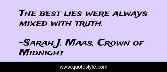 "Sarah J. Maas, Crown of Midnight Quotes." Quoteslyfe.com, 2025. Sat. 06 Dec. 2025. <https://www.quoteslyfe.com/quote/The-best-lies-were-always-mixed-with-8979>.
