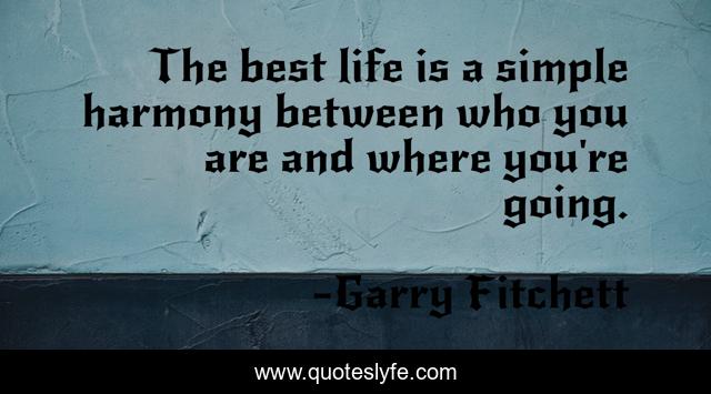 This page presents the quote "The best life is a simple harmony between who you are and where you're going.". Author of this quote is Garry Fitchett. This quote is about individuality, authenticity,.