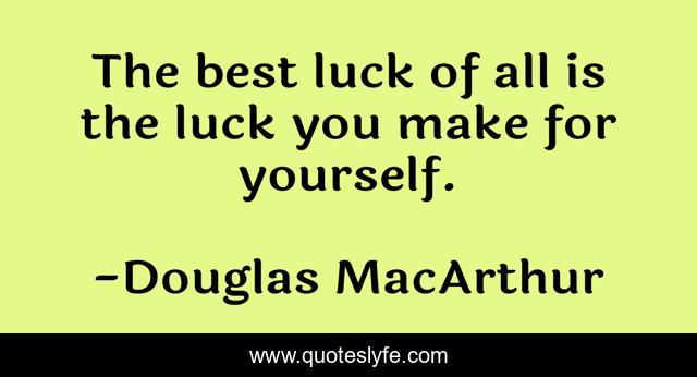 This page presents the quote "The best luck of all is the luck you make for yourself.". Author of this quote is Douglas MacArthur. This quote is about luck, yourself,.
