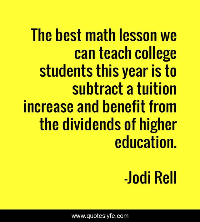 This page presents the quote "The best math lesson we can teach college students this year is to subtract a tuition increase and benefit from the dividends of higher education.". Author of this quote is Jodi Rell. This quote is about students, college, best,.
