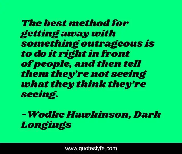 "Wodke Hawkinson, Dark Longings Quotes." Quoteslyfe.com, 2025. Sat. 06 Dec. 2025. <https://www.quoteslyfe.com/quote/The-best-method-for-getting-away-with-146456>.