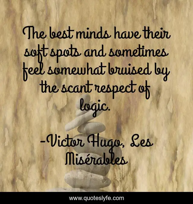 This page presents the quote "The best minds have their soft spots and sometimes feel somewhat bruised by the scant respect of logic.". Author of this quote is Victor Hugo, Les Misérables. This quote is about intelligence, logic,.