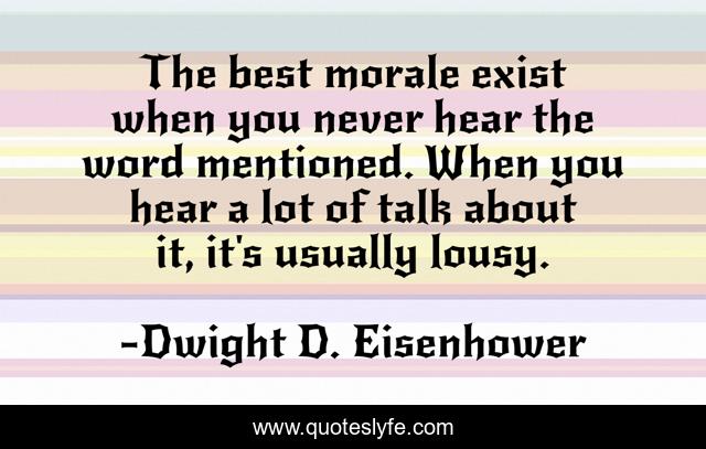 This page presents the quote "The best morale exist when you never hear the word mentioned. When you hear a lot of talk about it, it's usually lousy.". Author of this quote is Dwight D. Eisenhower. .