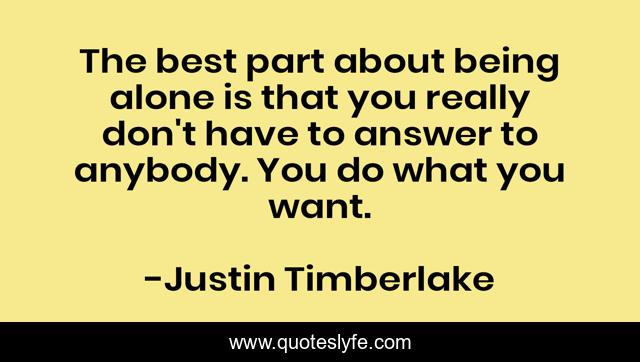 This page presents the quote "The best part about being alone is that you really don't have to answer to anybody. You do what you want.". Author of this quote is Justin Timberlake. This quote is about alone, being alone,.