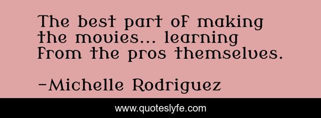 This page presents the quote "The best part of making the movies... learning from the pros themselves.". Author of this quote is Michelle Rodriguez. This quote is about movies, part, best,.