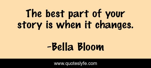 This page presents the quote "The best part of your story is when it changes.". Author of this quote is Bella Bloom. This quote is about create, transition,.