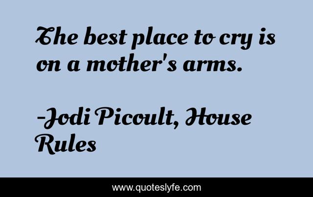 This page presents the quote "The best place to cry is on a mother's arms.". Author of this quote is Jodi Picoult, House Rules. This quote is about arms, mother,.