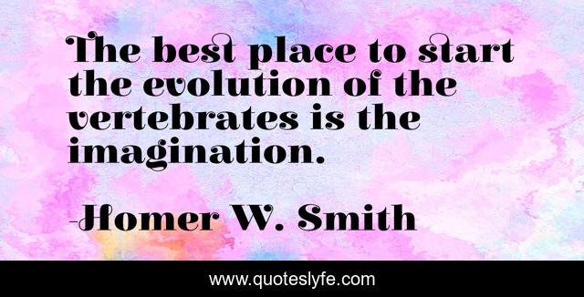 This page presents the quote "The best place to start the evolution of the vertebrates is the imagination.". Author of this quote is Homer W. Smith. This quote is about science, evolution, creation,.