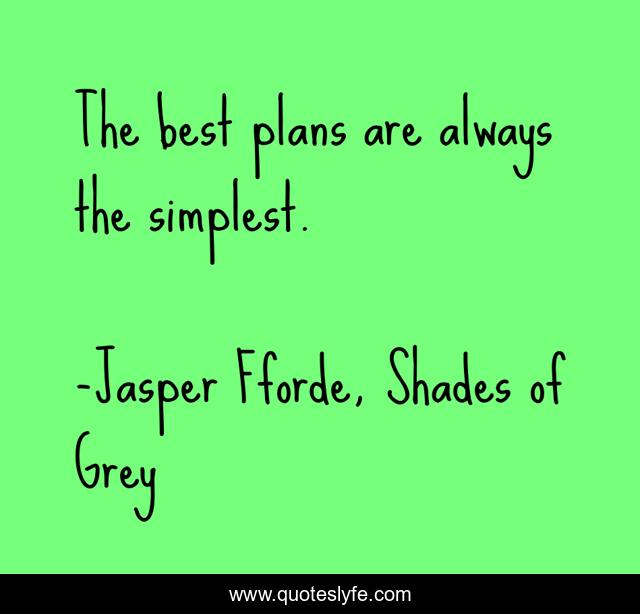 This page presents the quote "The best plans are always the simplest.". Author of this quote is Jasper Fforde, Shades of Grey. This quote is about simplicity, plans, thoughts,.