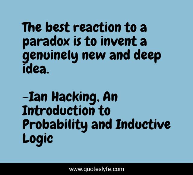 "Ian Hacking, An Introduction to Probability and Inductive Logic Quotes." Quoteslyfe.com, 2025. Fri. 05 Dec. 2025. <https://www.quoteslyfe.com/quote/The-best-reaction-to-a-paradox-is-8521>.
