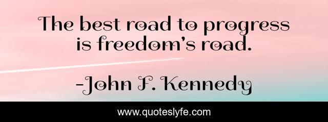 This page presents the quote "The best road to progress is freedom's road.". Author of this quote is John F. Kennedy. This quote is about freedom, road, progress,.