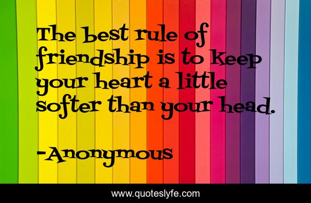 This page presents the quote "The best rule of friendship is to keep your heart a little softer than your head.". Author of this quote is Anonymous. .