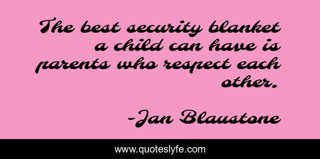 This page presents the quote "The best security blanket a child can have is parents who respect each other.". Author of this quote is Jan Blaustone. This quote is about security-blanket, parenting, parents, child-raising, security, children,.
