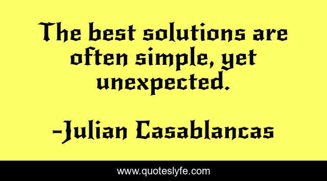 This page presents the quote "The best solutions are often simple, yet unexpected.". Author of this quote is Julian Casablancas. This quote is about simple, unexpected,.