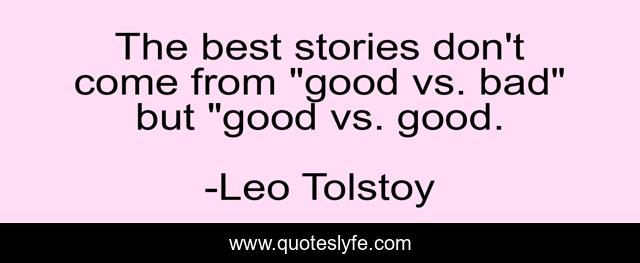 This page presents the quote "The best stories don't come from "good vs. bad" but "good vs. good.". Author of this quote is Leo Tolstoy. This quote is about life, books, writing,.