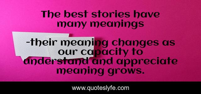 "their meaning changes as our capacity to understand and appreciate meaning grows. Quotes." Quoteslyfe.com, 2025. Fri. 05 Dec. 2025. <https://www.quoteslyfe.com/quote/The-best-stories-have-many-meanings-139747>.