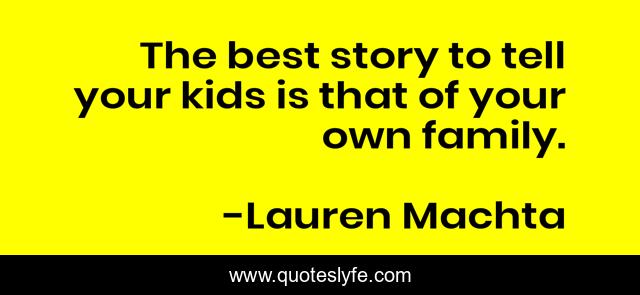 This page presents the quote "The best story to tell your kids is that of your own family.". Author of this quote is Lauren Machta. This quote is about family-love, reading, family, learning,.