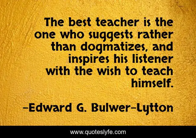 This page presents the quote "The best teacher is the one who suggests rather than dogmatizes, and inspires his listener with the wish to teach himself.". Author of this quote is Edward G. Bulwer-Lytton. This quote is about wish, teach, best,.