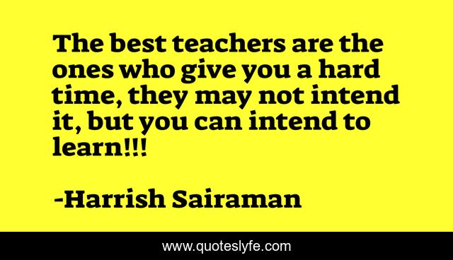 This page presents the quote "The best teachers are the ones who give you a hard time, they may not intend it, but you can intend to learn!!!". Author of this quote is Harrish Sairaman. This quote is about learn, intend, teachers, teacher,.
