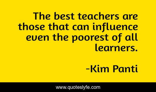 This page presents the quote "The best teachers are those that can influence even the poorest of all learners.". Author of this quote is Kim Panti. This quote is about positive, confidence, influence, life-lessons, studying,.