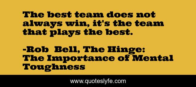 This page presents the quote "The best team does not always win, it's the team that plays the best.". Author of this quote is Rob Bell, The Hinge: The Importance of Mental Toughness. This quote is about mental-toughness, confidence,.